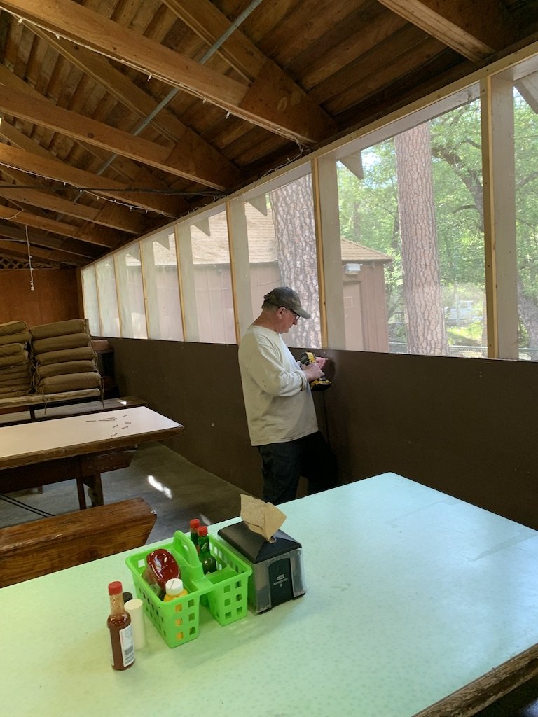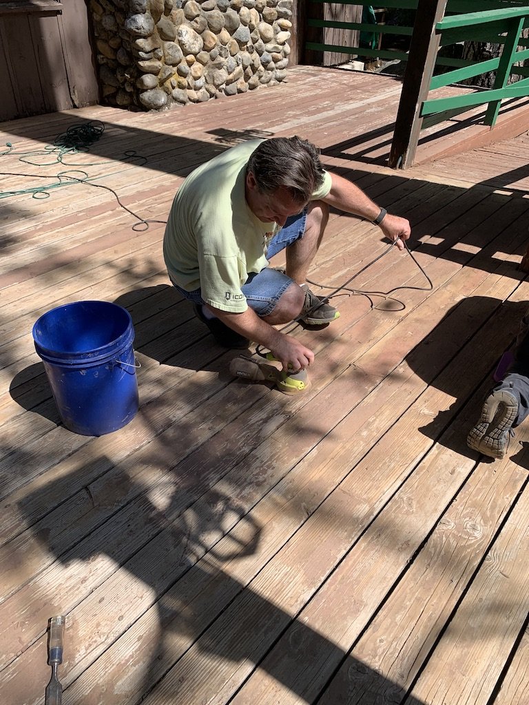 Tyler sanding the deck