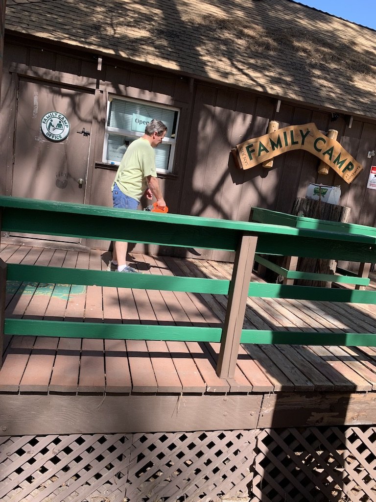 Tyler cleaning the deck