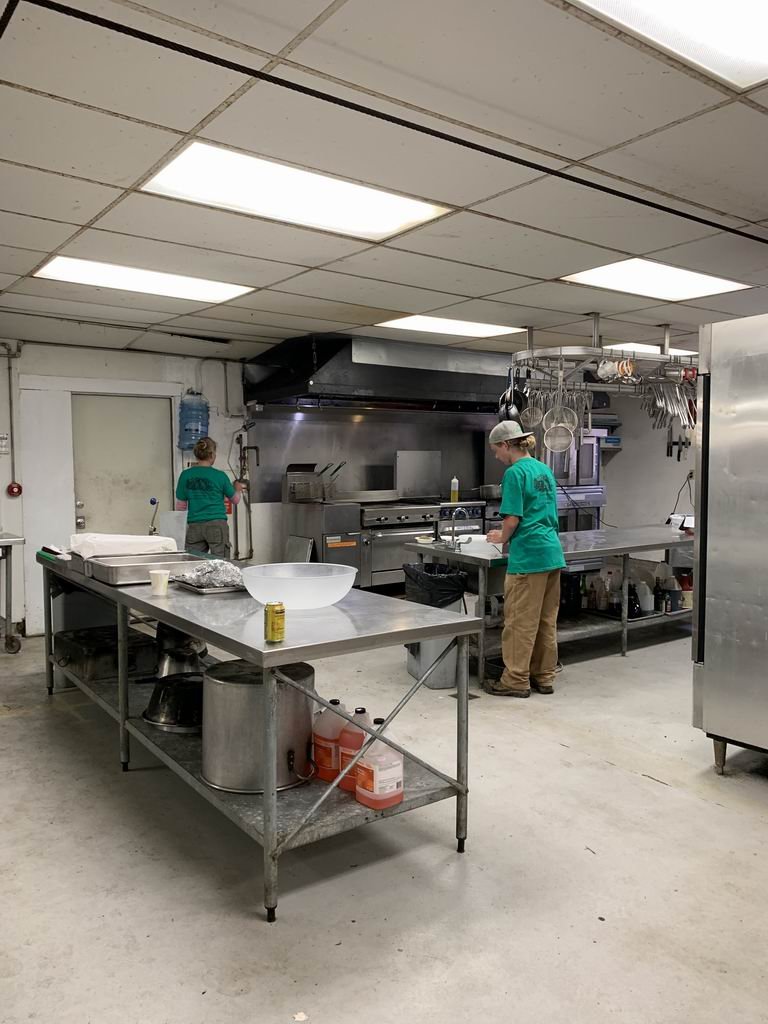Logan and Kristi cleaning the kitchen