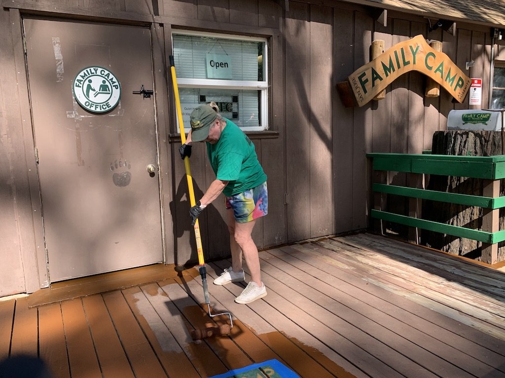 Michele painting the deck