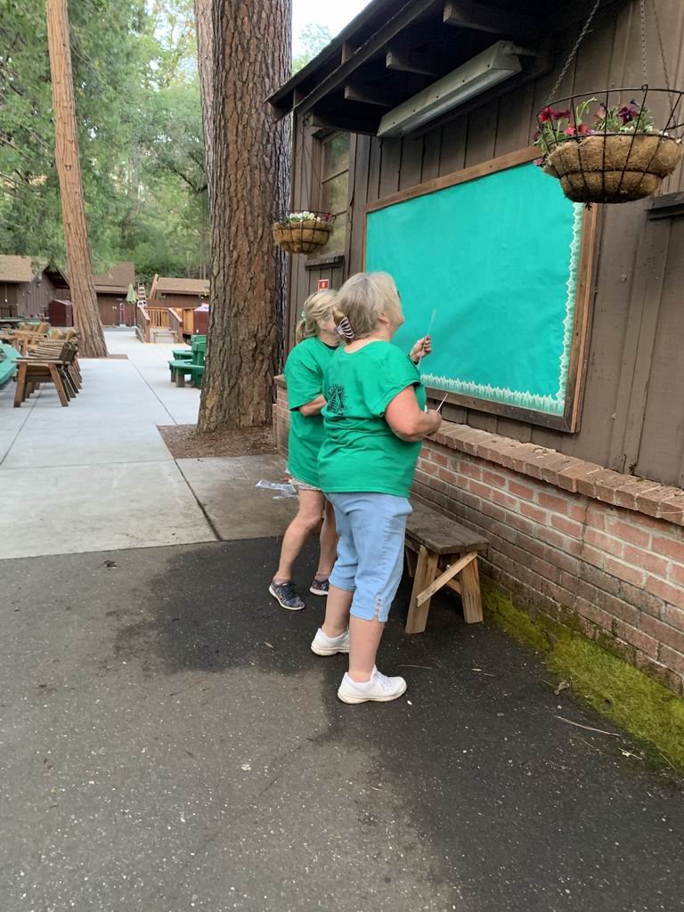 Steph and Margo updating sign board